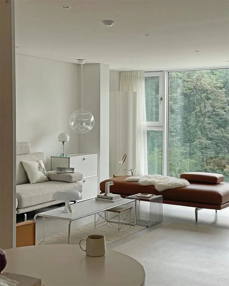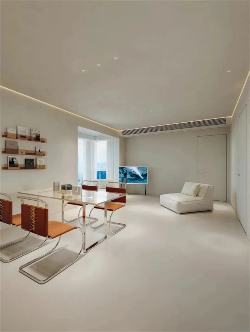 选择离地的悬空电视柜、透明亚克力边几或细腿沙发,减少对地面的侵占。低矮家具的留白设计,如同给空间注入空气,层高与开阔感立增30%。