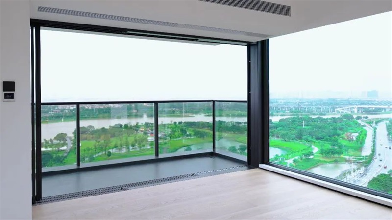 这一原理在门窗设计中同样适用:落地大开启的设计,大幅减少窗框与玻璃接缝的切割感,如同一整幅流动的风景画嵌入墙体,视线与光线无阻隔贯穿空间;而传统小开启扇因型材边框增多以及玻璃拼接,削弱通透性与整体感。