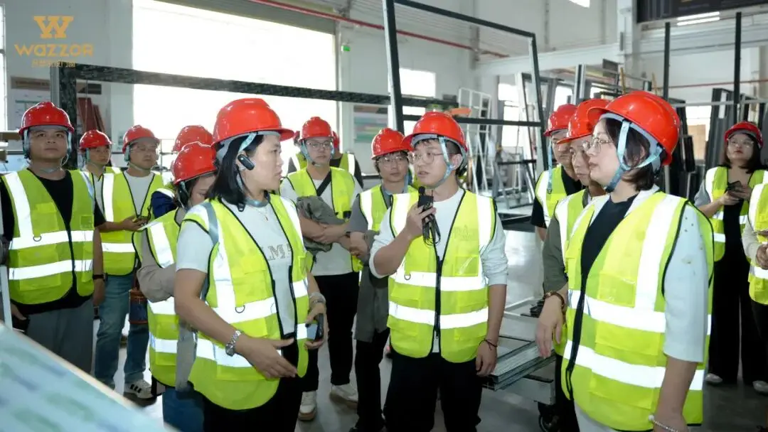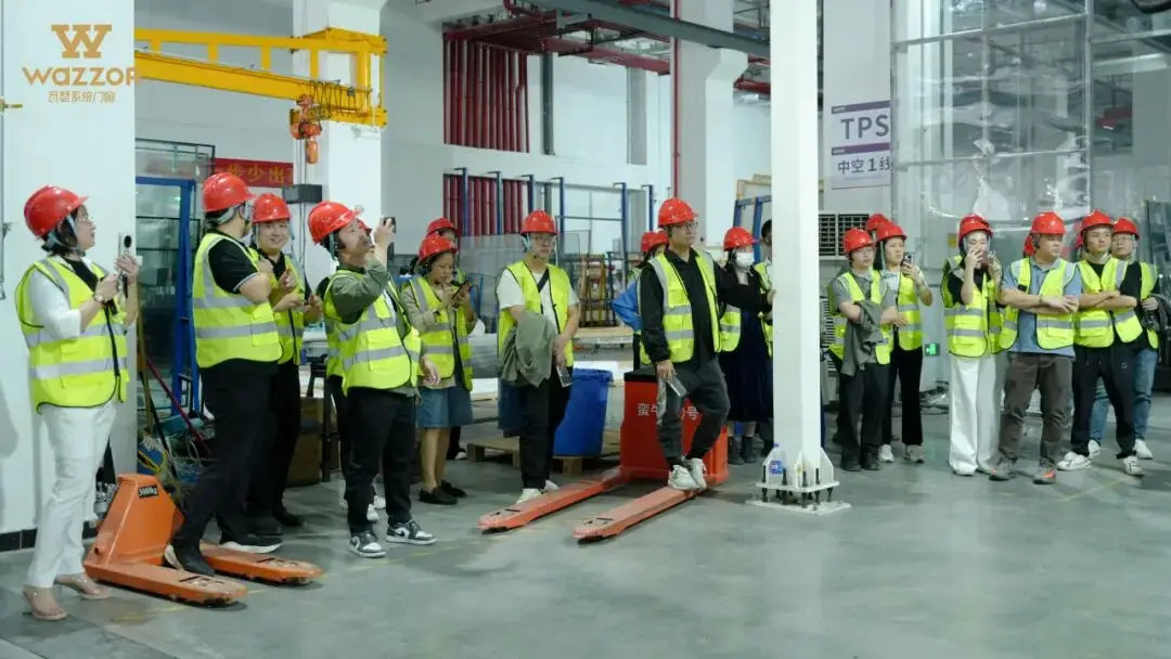 培训尾声,学员们走进瓦瑟5.0绿色智能生产基地,沉浸式感受瓦瑟智能制造体系的魅力。从0.01mm精度切割的德国叶鲁SBZ630一体化生产设备,到芬兰格拉司通4SG中空玻璃生产线,再到全行业仅两台的意大利飞幕五轴加工设备,每一个环节都彰显着瓦瑟对品质的执着追求。