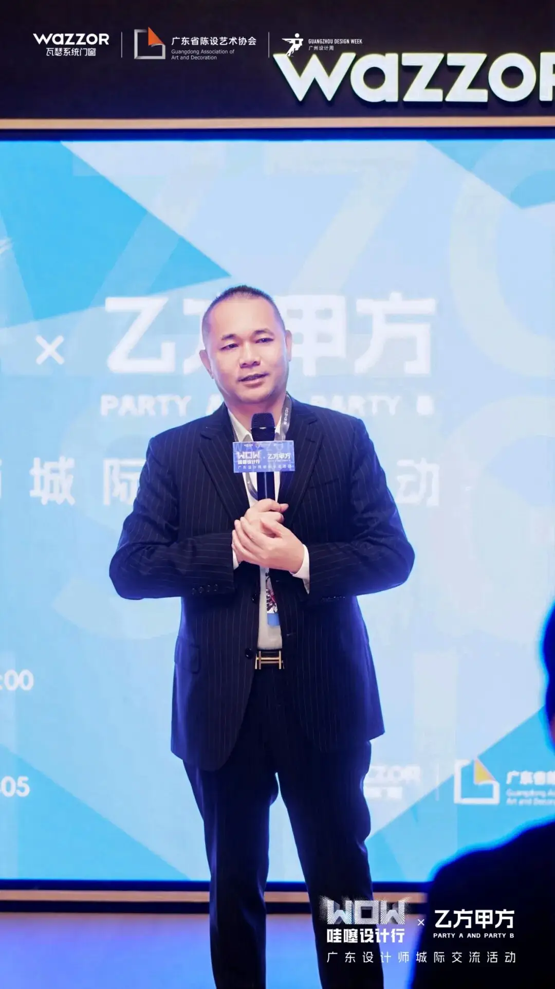 活动开场,瓦瑟系统门窗董事长 李昌安先生登台致辞。他阐释了瓦瑟秉持的“少即是多”理念,在此次展馆中所带来三款代表性产品:行业首创的气动密封轴门、立式对折幕墙窗系统及高性能智能电动口袋门,以持续创新产品赋能空间多元可能。李董表示,瓦瑟期待携手设计师共同打造理想家居,让高定设计更出色!