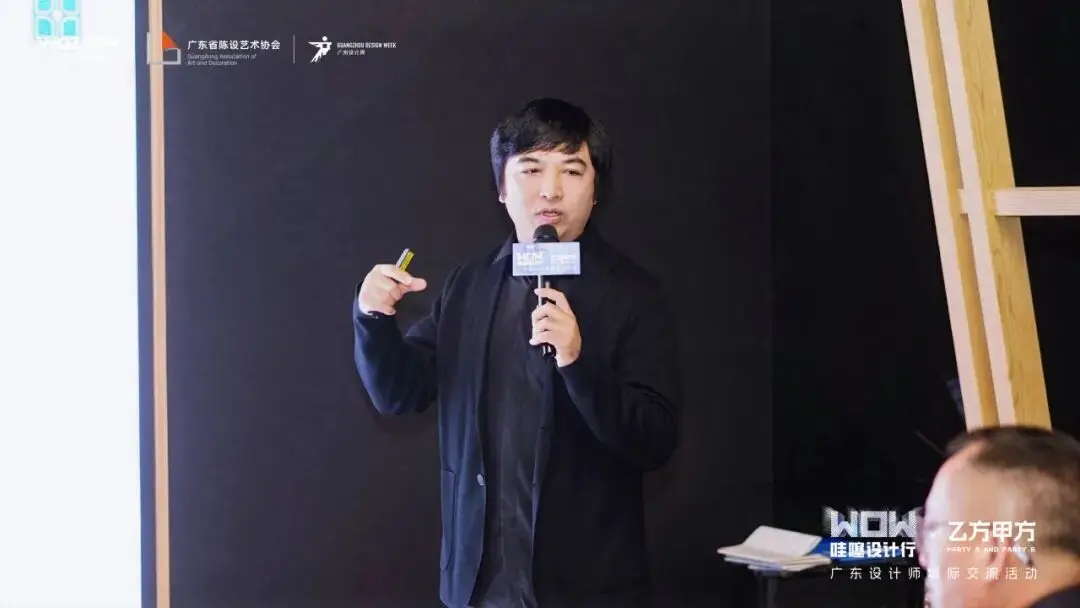 GDD深思设计创始人/总设计师 陈广标老师,以《从乙方到甲方:我的空间就是我的名片》为题展开分享。他以“投资运营甲方”的双重身份,主动打破传统设计边界,并以亲自打造的惠州晴溪温泉民宿、星回民宿及番禺艺龙瑞阁公寓酒店为例,阐述如何通过为自己投资运营的项目做设计,使作品成为一份“活态的作品集”。这不仅完整传递其设计理念,也在存量时代直接赢得客户信任、促进业务转化,真正实现了“空间即名片”的闭环逻辑。