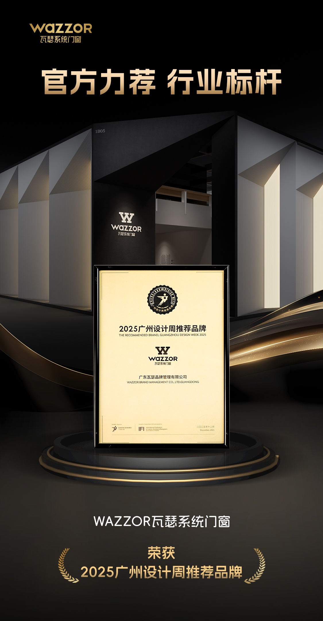 荣耀加冕!瓦瑟系统门窗斩获2025广州设计周推荐品牌